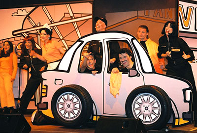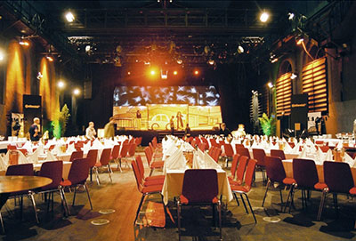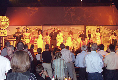 6 shows take place throughout the country, each with 150-200 guests. As locations, we rent complete musical theaters. A total of 18 musical performers, actors, dancers, acrobats on stage and our crew of 30 people behind the scenes ensures that everything runs smoothly. We design the storyboard, the music, the scenery, the makeup and costumes, timing, budget and stage direction, the locations, organize the catering, the complete lighting and sound equipment, the tour bus nightliner, the decorations, print media, participants handling and all the logistics.