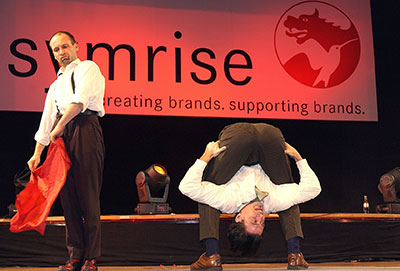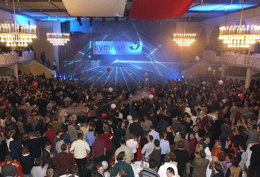 The company logo is spectacularly staged in a dazzling laser-show accompanied by confetti and a shower of balloons. The dancefloor shakes when the crowd gets moving.